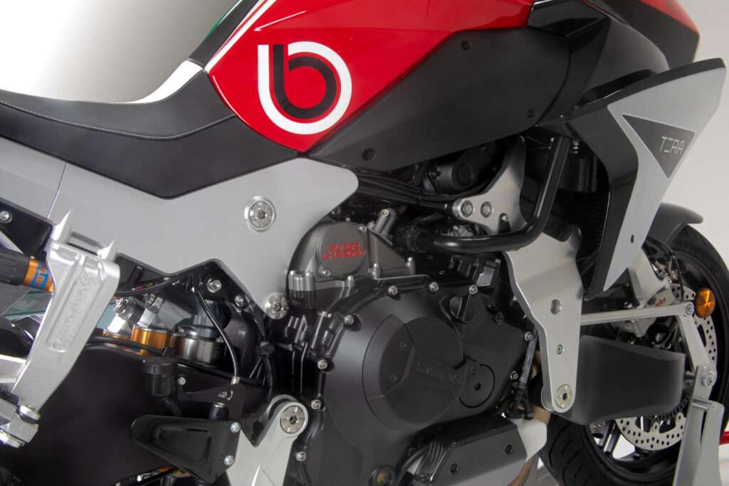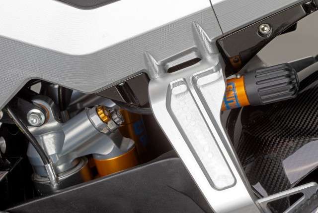 Do konstrukcji użyto wysokiej jakości aluminium oraz suchych włókien węglowych, a każdy element został wykonany ręcznie w tych samych autoklawach co części MotoGP i włoskich supersamochodów.